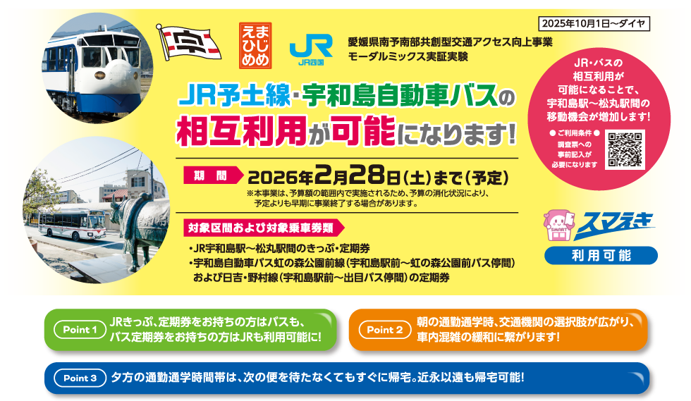 JR予土線・宇和島自動車バスの相互利用が可能になります!