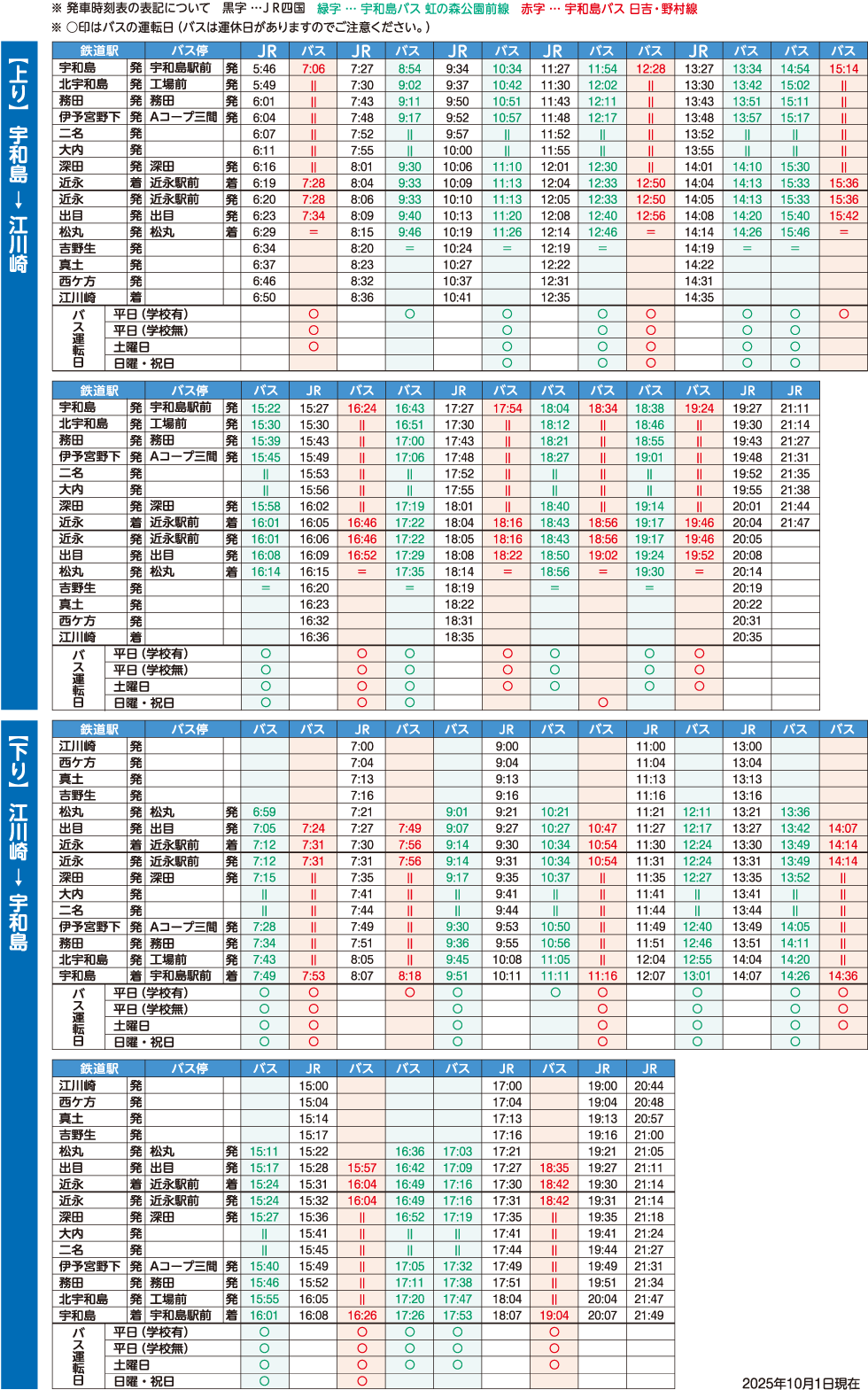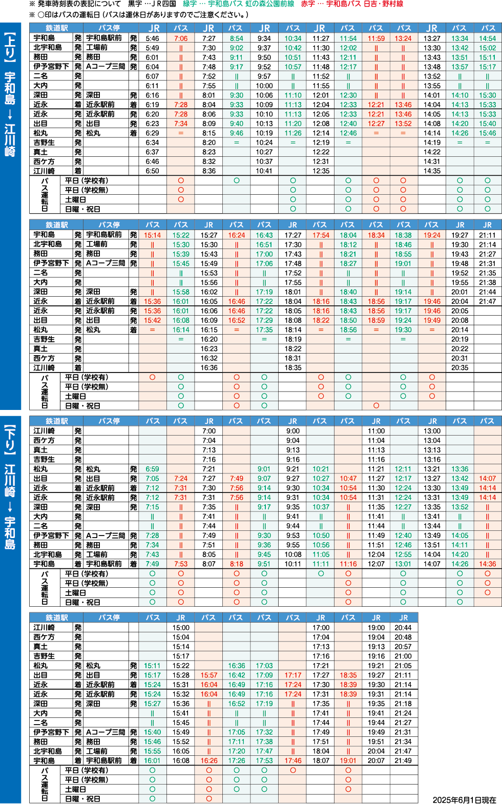 JR予土線・宇和島自動車時刻表