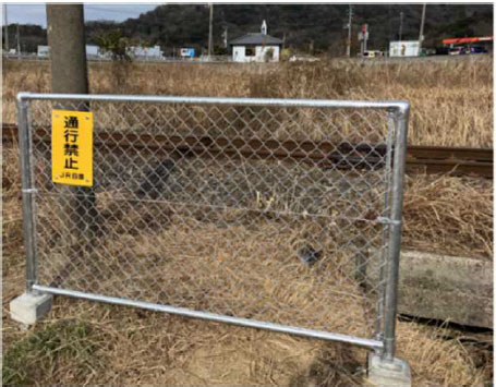 踏切以外で人が横断している「さく場道」については、防護柵及び通行禁止看板の設置を行うことにより、列車との接触による鉄道人身障害事故の防止を図っています。