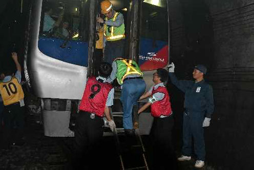乗務員による状況判断、またトンネル内からの避難誘導の際には、乗務員からの依頼により、ご乗車のお客様に降車等の協力を得ながら安全かつ迅速にトンネル外に避難誘導を実施しました。