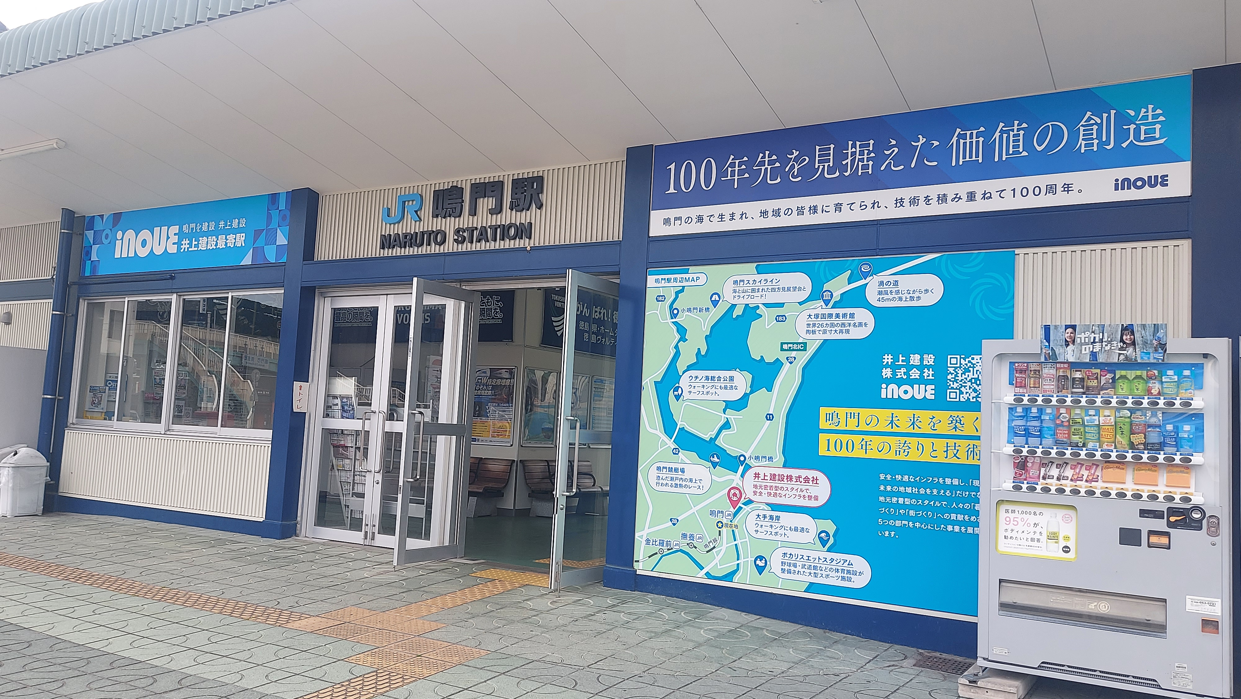 貴社の想いを…まるごと駅広告第二弾 鳴門駅「井上建設株式会社 井上建設最寄駅」 2024年6月1日、鳴門線 鳴門駅にて「井上建設株式会社」様の広告掲出を開始いたしました。南小松島駅に続いて、「貴社の想いを...まるごと駅広告」第二弾の実施となりました。駅舎、待合室内などに広告物を設置し、これまで徳島県鳴門市で創業100年以上の歴史を走り続けてきた広告主様の実績や想いが組み込まれたデザインとなっております。プレス資料はこちら 詳しくはこちら