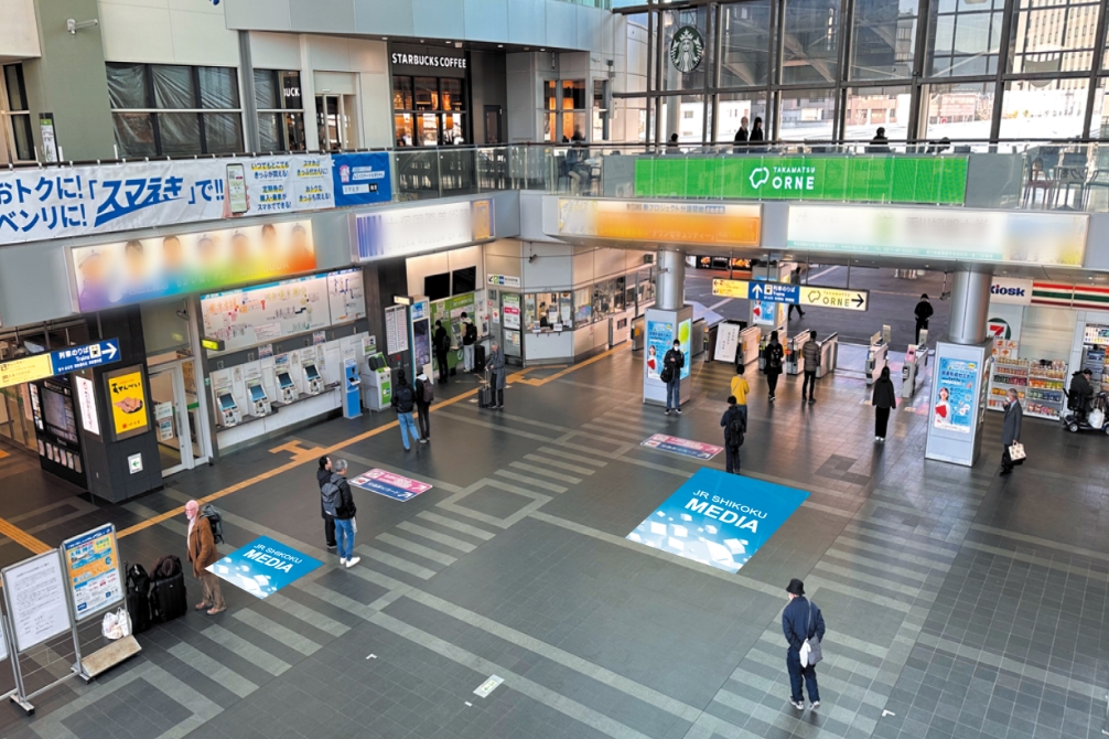 四国エリアの最重点エリアの一つである高松駅に掲出できる媒体です。 駅構内の主要動線を押さえている各媒体は、利用者への確実なリーチが期待できます。