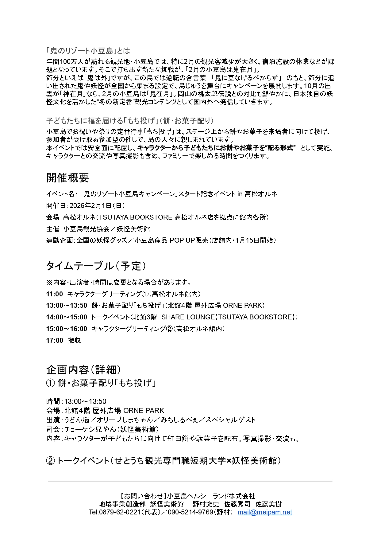 2月1日(日)に高松オルネ館内にて「鬼のリゾート小豆島キャンペーン」スタート記念イベントを下記のとおり開催いたします。